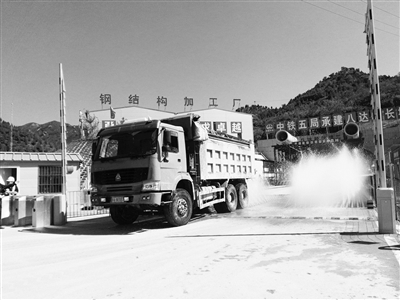 “可以出车!”随着一声口令,大门口的洗车轮机开启,喷射出水柱,两辆满载的渣土车从洞口驶出,在洗车轮机前停下,冲洗干净车轮后驶出了工地大门。这是9月28日北京市住建委组织部分北京市民代表参观冬奥会相关基础设施京张高铁八达岭长城站时的一景。临近国庆,工人们正热火朝天地建设。