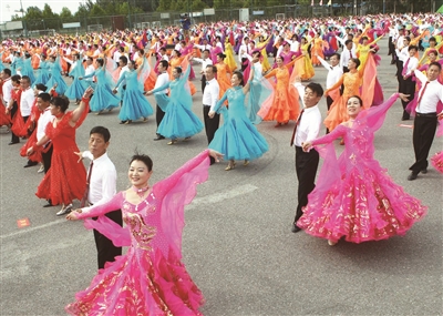 昨天,朝阳区第九届“炫舞朝阳”群众交谊舞展演活动在朝阳区体育中心举行。来自朝阳区43个街乡及石景山区、密云区、房山区、亦庄经济开发区以及河北省泊头市的约5000名舞蹈爱好者同场共舞,共同庆祝祖国67华诞。