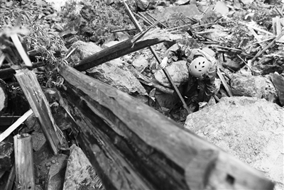 9月29日,一名救援人员在山体滑坡造成的乱石间进行搜救。9月28日,浙江省丽水市遂昌县北界镇苏村发生山体滑坡灾害,导致房屋被埋,多人失联。目前,救援工作在紧张进行中。新华社发