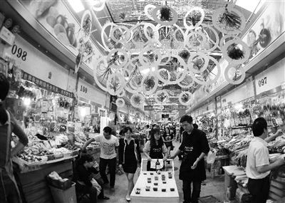 在这方面也有不错的范例可以借鉴。不久前,有着十多年历史的北京新民菜市场,在4个多月的升级改造后恢复营业。据了解,新民菜市场是本市第一批“菜篮子”工程挂牌市场。这次的华丽升级也下足功夫,不仅减少了摊位、加宽了通道,在硬件设施上,也进一步升级,比如,安装了中央空调、监视器。