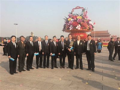 图为劳模们参加向人民英雄敬献花篮仪式后,在“祝福祖国”花坛前留影。付连成供图