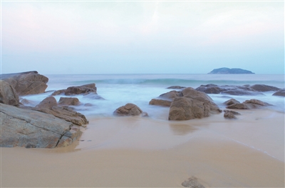 海南省万宁市有一个美丽的海湾叫南燕湾,东方渐渐露白,海浪赶在第一缕阳光露出海面之前,快速地奔向海岸,去亲吻等它多时的“礁姑娘”,这就是太阳升起前的大海晨韵。