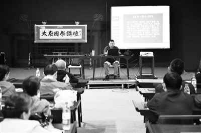 太庙国学讲坛是由北京市总工会主办,北京市劳动人民文化宫承办,中国紫禁城学会协办的面向全市职工开展的公益活动。活动聘请国学专家授课,内容涉及国学相关的各类知识,该活动正成为职工学习国学的重要阵地。本报记者 彭程 摄
