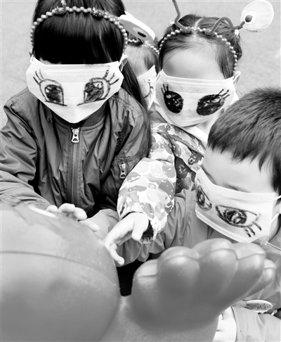 “大眼睛对的准”“盲人体验”“近视进行时”……昨天,在东城区第二幼儿园举办的世界“爱眼日”主题活动中,小朋友们通过一个个生动的体验游戏,亲身感受保护眼睛的重要性。图为孩子们在做“盲人体验”游戏。
