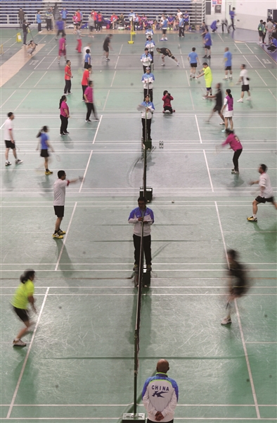 羽毛球场上,比赛选手挥舞着球拍,划出美丽的弧线,尽可能发挥最高水准;台球比赛中,周围静谧,选手全神贯注于每一球的发挥;广播体操比赛,几十名职工组成的队伍动作整齐划一。