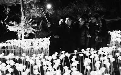 延庆古崖居景区于10月29日至31日开启夜游模式。昨天,许多城里的市民自驾车到延庆区的古崖居探秘。记者在活动现场看到,古崖居夜游模式在去年的基础上,进一步升级活动规模和档次,利用高科技设备打造京城首场3D全息山体投影秀。本报记者 陈艺 摄影报道