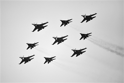 10月30日,“雨燕”飞行表演队的4架米格-29飞机与“勇士”飞行表演队的5架苏-27飞机进行混合编队飞行训练。当日,参加第十一届中国国际航空航天博览会的俄罗斯“雨燕”“勇士”飞行表演队在珠海进行“合体”预演。新华社发