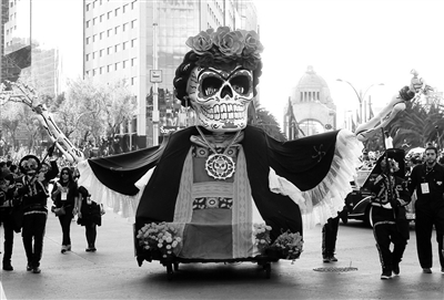 10月29日,在墨西哥首都墨西哥城,民众参加“亡灵节”游行。墨西哥将于11月1日和2日迎来传统节日“亡灵节”。