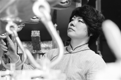 在王玲创新工作室里,记者看到了用竹子做的乐器,还发现用PPR高分子聚合材料做的乐器。王玲说:“雅乐团在最初的演奏中发现乐器有问题,演奏‘中和韶乐’,必须用八音乐器,加上是御用之物,对技艺的要求很高。社会上的乐器作坊制作一件乐器开价很高,我们决定自制乐器。”