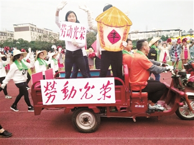 近日,四川一高校2016年秋季运动会在成都拉开帷幕。由该校学生农组成的“劳动之美农场特色方队”十足亮眼吸睛。 同学们开着拖拉机,肩扛锄头,手里举着“劳动光荣”的字牌,步伐整齐走过运动场,引起一大波尖叫。