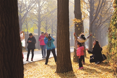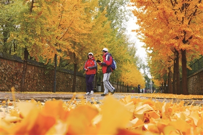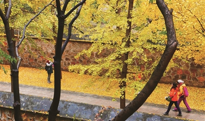 深秋北京,金黄的银杏成为一大盛景。近日,市民纷纷来到京城各处银杏大道漫步,欣赏迷人秋景。