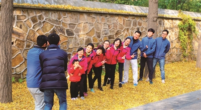 记者在圆明园银杏大道看到,园内几百余株银杏树均已披上了“黄金甲”,上千名游来此游玩拍照。