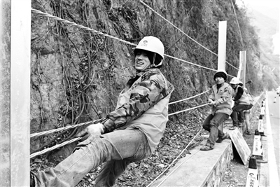 在109国道下苇店段,中国铁建十一局项目经理郝峥向记者说道:“这一段是此次地质灾害治理最长的路段,大概有1.5公里左右,分布着修路开山形成的连续7个切坡断面,由于山体紧挨着公路,坡高基本都在50米左右,最高可达到80米,并且接近于垂直,公路隐患特别大。”