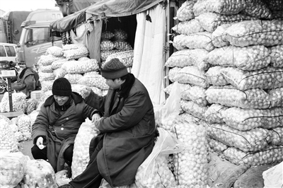 昨天,记者在新发地大蒜销售区了解到,今年大蒜价格涨了近90%,售价创下历史新高。去年冬季的寒潮导致大蒜供应减少,价格因而飙升,面对高居不下的蒜价,人们戏称“蒜你狠”卷土重来。目前,市场上大蒜供应量充足,由于价高,销量已经明显下降。随着明年2月南方产区的大蒜陆续上市,到5月,北方产区大蒜将开始批量上市了。本报记者 孙妍 摄影报道