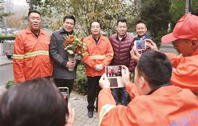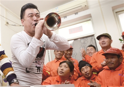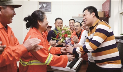 11月10日,由褚柏林带领的艺术家三人小组,来到北京环连环保洁服务公司,把一台精彩的文艺节目献给环卫工人。