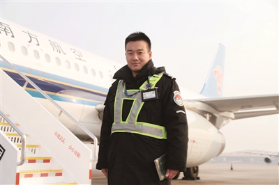 没有成为飞行员的他并没有气馁,而是怀揣着对蓝天的向往,来到了首都机场,成为了一名距离飞机最近的飞机监护员。“既然不能驾驶战机在空中翱翔,能在陆地上守护民航飞机的安全也是一个不错的选择,这也算是圆了我儿时的梦想。”王艳龙笑着说。