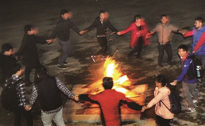 由于重走长征路的职工有八成都是90后,党支部特意准备了篝火晚会,播放革命主题影片,度过一个别有意义的一晚。