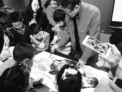 11月26日,劳动人民文化宫在太庙艺术馆祧庙举办亲子绘画坊活动。文化宫副研究馆员杜芳伦讲解教学了绘画艺术,并引导孩子以太庙艺术馆馆藏齐白石、崔子范等书画家的作品为范本进行再创作,切身感受艺术创作的乐趣。本次活动是“庙堂艺象——太庙艺术馆馆藏近现代书画菁品展”的一部分,共有20个工会会员家庭参与其中。