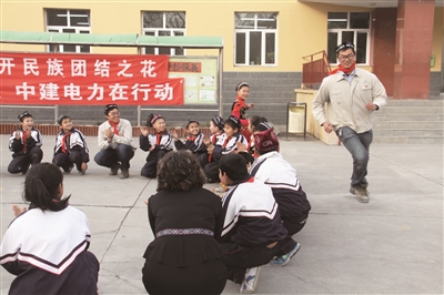 轻快曼妙的赛乃母舞,伴随着浓郁欢快的新疆民歌,教室里不时传来孩子们的笑声……这是“中建蓝催开民族团结花”活动现场的一幕。3年来,建设者们与属地周边中小学定期开展联建活动,志愿者们还主动担当学校义务辅导员,不定期为学校送去书籍、文具等慰问品。