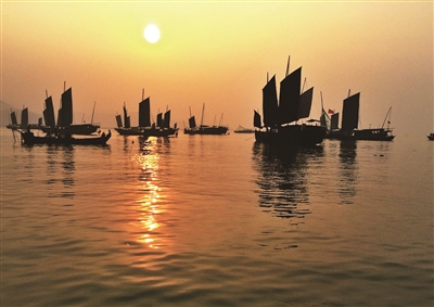 回返时,天近黄昏,落日的余晖将湖水染成一片殷红。此时,山石、林木、帆影……整个湖山浸沉在深秋寒凝的空气里,这却是太湖的又一番风光。