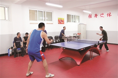 和舞蹈室同样热闹的,还有乒乓球室。由于用地紧张,目前只有一个乒乓球台。这却成了老师们的抢手货。每周三、周五下午的开放时间,老师们总是围满了屋子轮流打球。后来,在大家的强烈建议下,学校工会决定每天开放乒乓球室,并派专人看管职工之家,让更多教职工有机会锻炼身体,放松身心。