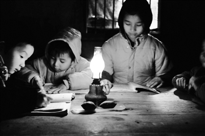冬天夜长昼短,吃过晚饭,母亲收拾好碗筷,又安顿了弟弟们早早上床睡觉。我伏在饭桌上的煤油灯下写作业。那时村里还没电灯,家家户户都点煤油灯或菜油灯。我家的煤油灯是用一个废旧的墨水瓶改装的,灯芯就是屋后采的灯盏草做的。如豆的煤油灯,照亮的地方只有一小块儿。母亲搬了椅子借着我写作业的余光糊鞋底。