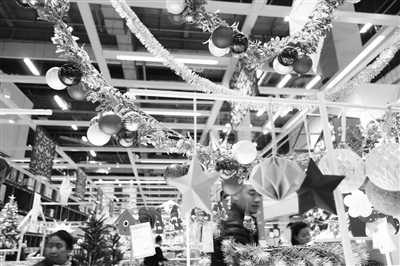 昨天,记者在北四环某大型家具市场看到,随着圣诞节和新年的脚步越来越近,不少市民前来着手置办节日家居装饰品。圣诞树、圣诞靴、烛台等饰品都可谓是“高颜值”的代表,被商家摆放在卖场最显眼的位置。本报记者 孙妍 摄影报道