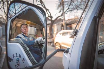 日前,记者来到刘义柱所在的清洁车队,跟随他开车走街串巷去收集垃圾。“在我眼里,环卫工作是脏活累活,也是技术活,就看你是不是用心去做。”刘义柱说。他开着车在胡同里穿来穿去,还不时和老街坊打着招呼。“北京的胡同非常狭窄,有的路边还停放着私家车,如果出现剐蹭事故大家都不高兴,这就需要有很好的驾车技术。”刘义柱一边说一边熟练的收完了几条胡同的垃圾。