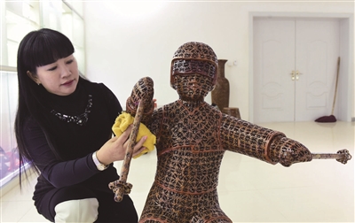 除了个人喜好,徐秀玲投入精力制作山核桃工艺品还有另外一个原因,由于她开办的涂料厂涉及污染,被区环保局叫停,急需对企业进行转型的她便把目光投向文化创新领域。徐秀玲的17个工人工作一年只出品了30多件山核桃工艺品,由于产量小,这些工艺品的价格也比较昂贵,“到现在还没有卖出一件产品,我打算在世园会上进行展览,拓展一下销路。”
