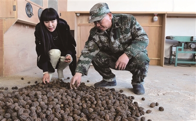 谈到与山核桃工艺品的渊源,是一次徐秀玲出差,偶然发现路边核桃工艺品很好看,就买下带回家。所谓凡事不禁琢磨,联系到延庆本地就大量出产山核桃但又愁销路,徐秀玲打起了山核桃精加工的主意。