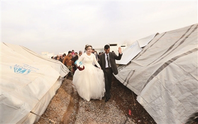 12月8日,伊拉克摩苏尔Khazir地区,伊拉克一对新人在难民营地举办婚礼。过去的一年里,伊拉克军队已经从“伊斯兰国”手中收复了安巴尔省的大部分地区。现在,伊拉克军队正大规模进军摩苏尔城市北部地区,逼近“伊斯兰国”武装在伊拉克的最后城市堡垒。