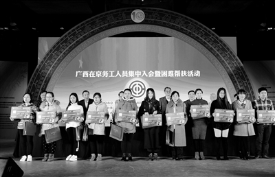 本报讯(记者 崔欣)昨天,来自广西的1200名在京务工创业人员,就地参加了工会组织。会上,15名在京务工的困难职工,收到了帮扶慰问金和慰问品。