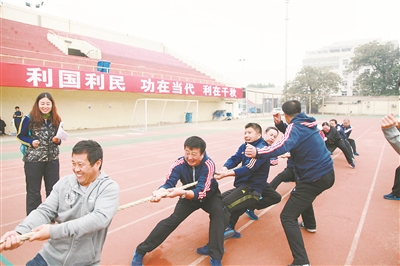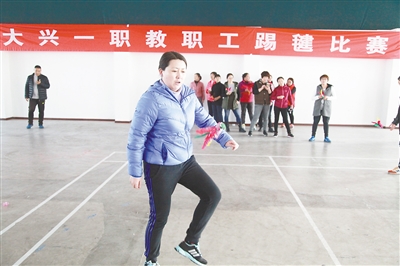 为进一步提高教职工身体素质,丰富广大教职工的校园文化生活,营造健康向上的校园文化氛围,2016年11月,大兴一职工会先后组织了教职工踢毽比赛和跳绳比赛,吸引了全体职工热情参与。在“两分钟趣味踢毽子”比赛中,教职工将一只只五彩的毽子抛入空中,组成了一幅幅优美的画面。而在几天后开展的教职工跳绳比赛,将所有教职工团结在一起,大家一个个从长绳下穿过,组成了一条人的长龙。绳子擦地的清脆响声、工作人员的计数声、响亮的欢呼声和热情的掌声交织在一起,响彻整个校园。