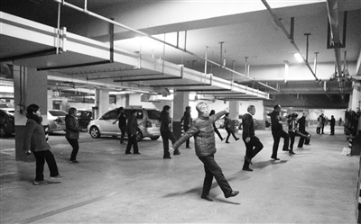 2016年12月19日,山东省滨州市,雾霾天气袭来,当日PM2.5指数一度突破375,为重度空气污染天气。一些喜爱健身的居民为应对空气污染想出妙招,他们联手将自己的地下停车位腾出来拼成了几块空地,并在空地上跳广场舞、踢毽子。(12月20日中新网)
