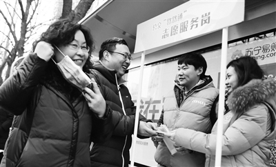 昨天早高峰,公交电车客运分公司十三车队工会组织绿色志愿者,在蒲黄路西口公交站站台,向乘客倡导“绿色出行,节能减排”理念。当日,志愿者还向乘客发放了一次性口罩。本报记者 陈艺 摄影报道