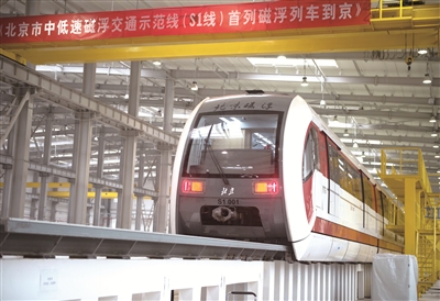 明年,家住门头沟的居民进城到石景山将只需要20分钟。北京市中低速磁浮交通示范线(S1线)首列磁浮列车日前进京到达S1线石门营车辆段,之后将会启动列车调试,预计将在2017年实现载客运行。S1线是北京市首条磁浮线,西起门头沟区的石门营站,东至石景山区的苹果园站。