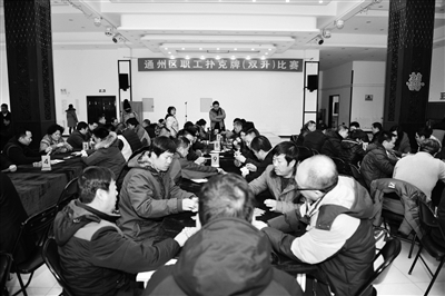 近日,通州区总工会举办通州区职工扑克牌“双升”比赛,33支队伍共有100余人报名参赛。经过一天共四轮紧张激烈的比赛,最终,教委、气象局、老干部局、台湖镇、建委、武夷物业公司、政协、体育局,分别获得第1至8名。