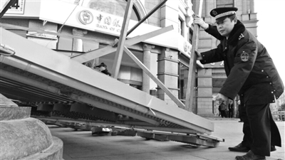 “这个最大的广告牌长和宽是10米乘以5米的,冬天风比较大,一旦出现问题,可能会砸到过往的路人,必须拆除。”劲松城管执法队副队长郭岩告诉记者。
