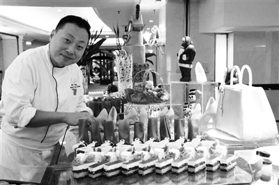 除了吸收别人的优点,杨军还擅长融合中国元素,他会尝试将桂花、人参、百合等中国食材融入自己的作品。“这样既能平和我们中国人的口味,而且吃起来还不上火。”注意细节,既讲究口感,又注重健康,是杨军甜点制作的又一特点。