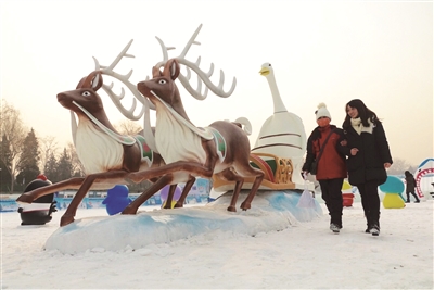 元旦小长假,第七届陶然亭冰雪嘉年华在公园南湖拉开帷幕,这也是二环内唯一的滑雪场。不同于往年的是,今年的陶然亭冰雪嘉年华全面升级,场地由原先的3万平方米扩大为5万平方米,新增2万平方米的滑雪区域,全力为游客、市民打造“自由活动区(免费项目)”“冰雪游乐活动区”“初级滑雪区”三大区域,以满足广大游客滑雪、戏雪的不同需求。本报记者 邱勇 摄影报道