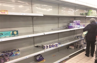 2017年1月2日,江苏南京,一超市举行“跨年不打烊”活动,百余品类商品打折优惠促销,部分商品5折起售,吸引市民蜂拥而至,毛巾、卷纸、牙刷、酱油、醋等生活用品被市民抢购,部分货架上的商品甚至出现断货现象。