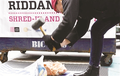 当地时间2016年12月28日,美国纽约时报广场举办一年一度的“大解脱日”活动,民众将2016年中不快乐的回忆以信件、照片,或是书信的形式扔进粉碎机中,或是以任何形式消灭掉代表不快乐的记忆的物品,从而告别过去的一年,迎接新的一年。