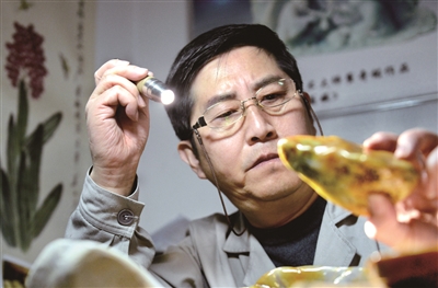 北京市劳动模范、中国工艺美术大师、中国玉石雕刻大师……在崔奇铭的简历中,有一大串显赫的职务和荣誉。近日,东城区总工会又授予他“行业领军人物”称号。