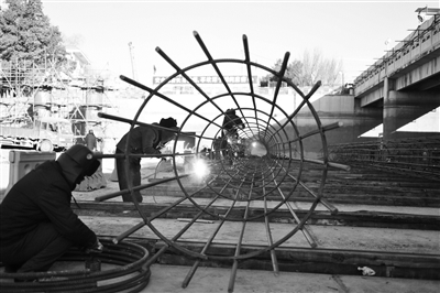 近日,承建海淀上庄道路桥梁工程的北京城建二公司上庄项目部,在全国劳动模范邢洪杰的带领下,全员热情高涨,争分夺秒斗严寒,掀起冬施大干的高潮。据了解,项目部拟定了在春节期间展开劳动竞赛的计划,确保工程在今年上半年汛期来临前,主体工程亮相。上庄道路桥梁工程为7跨,全长500米,与改造后的上庄路形成北京西部的一条交通主动脉。