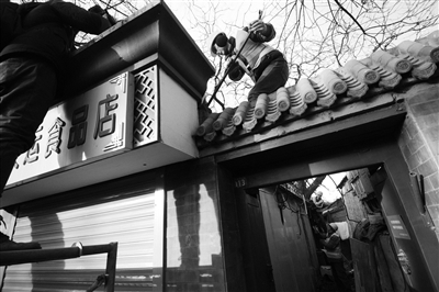 1月10日上午,记者跟随城管执法人员来到南池子大街113号院,这个院子存在开墙打洞和私搭乱建两种违法行为。一般一个平房院只有一个院门,但这个院有三个门。观察发现,挂门牌号的门才是正规的院门,另外两个为私自开墙打洞。其中一个房门原本应朝院内开,但为了经营旅游纪念品,就拆了院墙变成门脸。执法人员对临建房进行拆除之后,对开墙打洞的行为进行了封堵。