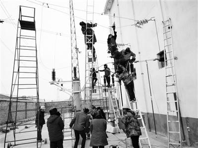 在零下30℃时,暴露在外的职工头发上都会结上霜花,洒水很快就能结冰,手裸露在户外几十秒,就冻得麻麻的生疼。项目部的变电工们,穿着保暖服、厚外套、羽绒服、军大衣四层衣服,穿上几条厚棉裤,戴上皮帽、皮手套,才能出去施工。