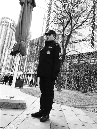 “在呼啸的寒风中,执勤的保安笔直站着,脚已冷得发麻,但笔直的姿势始终未变。这种场景对我们在户外执勤的保安来说,都是常态了。”北京戎威远保安公司驻三里屯SOHO项目部经理夏振浩告诉记者。