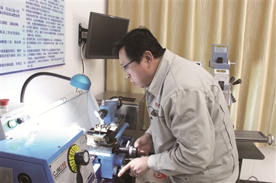 在位于木樨地附近的一间面积不大的工作间里,他穿着北京燃气的工作服,安静地站在实验用的机床前。切刀与被打磨的零件相互碰撞,发出阵阵声响,却丝毫没有影响到他对任何工作细节的执着,仿佛周边的一切都已静止。