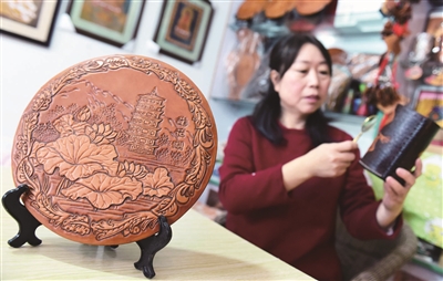 从一位北京城里的普通打工者,到回到农村投身手工皮雕制作成为“巧娘”,孙淑娟迈过了人生最艰难的一段时光,但这段时光也为她的人生打开了一扇新的窗口。孙淑娟设计制作的皮雕作品由于工艺精湛,富有民族特色,不仅在各种比赛中收获好成绩,还入选了北京礼物、世园会与冬奥会纪念品,备受国内外收藏爱好者的喜爱。