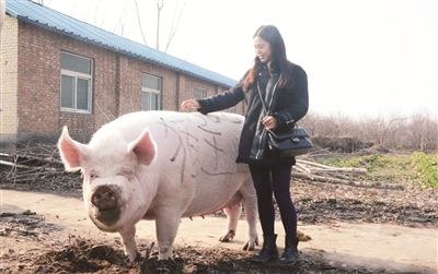 1月8日,郑州黄河滩地,一头体长2.1米,体重1500斤的大肥猪被一名胆大的女子当做“小牛”骑了起来。当日,一场由黄河滩养殖协会举办的“猪王争霸赛”在黄河滩头多家养殖基地中进行角逐,最终这头1500斤重,体长2.1米,高1.05米的白毛大猪在PK掉几十头大肥猪后,夺得争霸赛“猪王”称号。